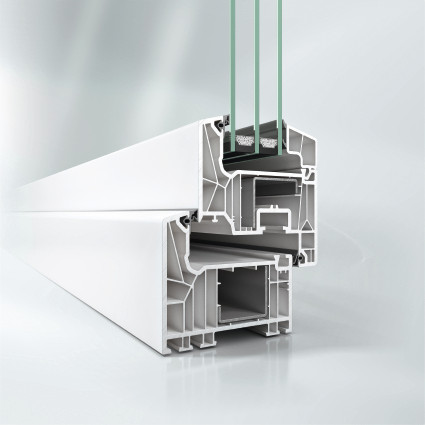 Il sistema alzante scorrevole Schüco ThermoSlide, testato RAL, si basa sulla tecnologia da 82 mm Schüco Corona SI 82 e presenta una profondità di telaio pari a 219 mm. La soglia con triplice separazione termica e i profili di rinforzo del telaio esterno, anch’essi a taglio termico, permettono di raggiungere eccezionali valori in termini di isolamento. Una prestazione a cui contribuiscono anche l’inserimento dell’anta all’interno del telaio e le guarnizioni in EPDM pre-inserite, che garantiscono un’eccellente tenuta ermetica dei giunti.